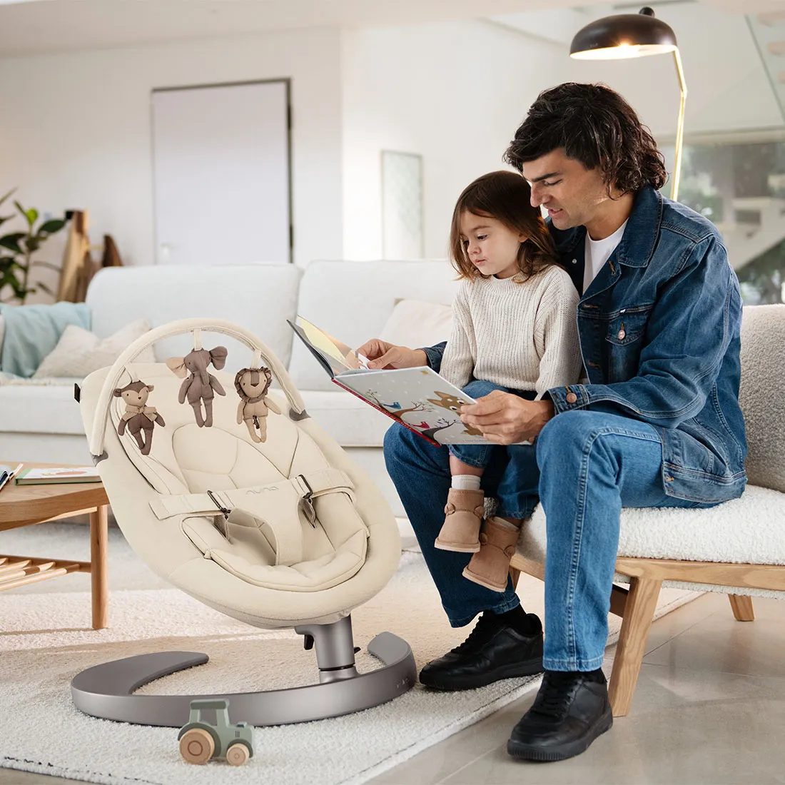 Вдохновлённое беззаботным покачиванием листа на лёгком ветерке, кресло-шезлонг LEAF Grow оснащено уникальным механизмом безмоторного качания. Малыш может расслабиться в естественной успокаивающей атмосфере или понаблюдать за дружелюбными подвесными игрушками, а вы сможете насладиться временем, пока ваш чай ещё тёплый.