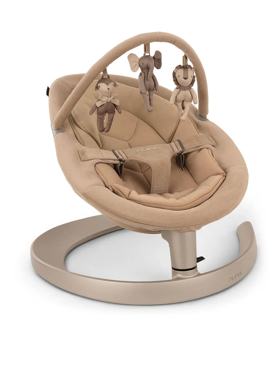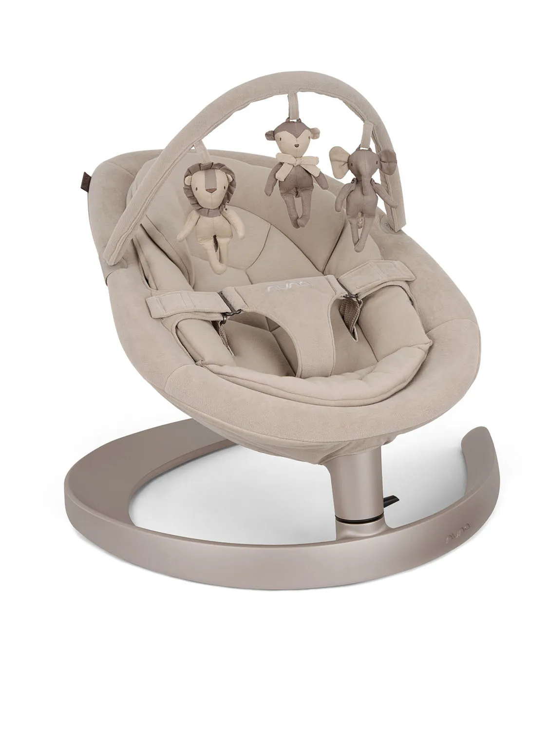 Съемная дуга с очаровательными игрушками (Маурицио, Лео и Олив), за которыми так интересно наблюдать или поиграть, взяв их в ручки, так как они легко отстегиваются.