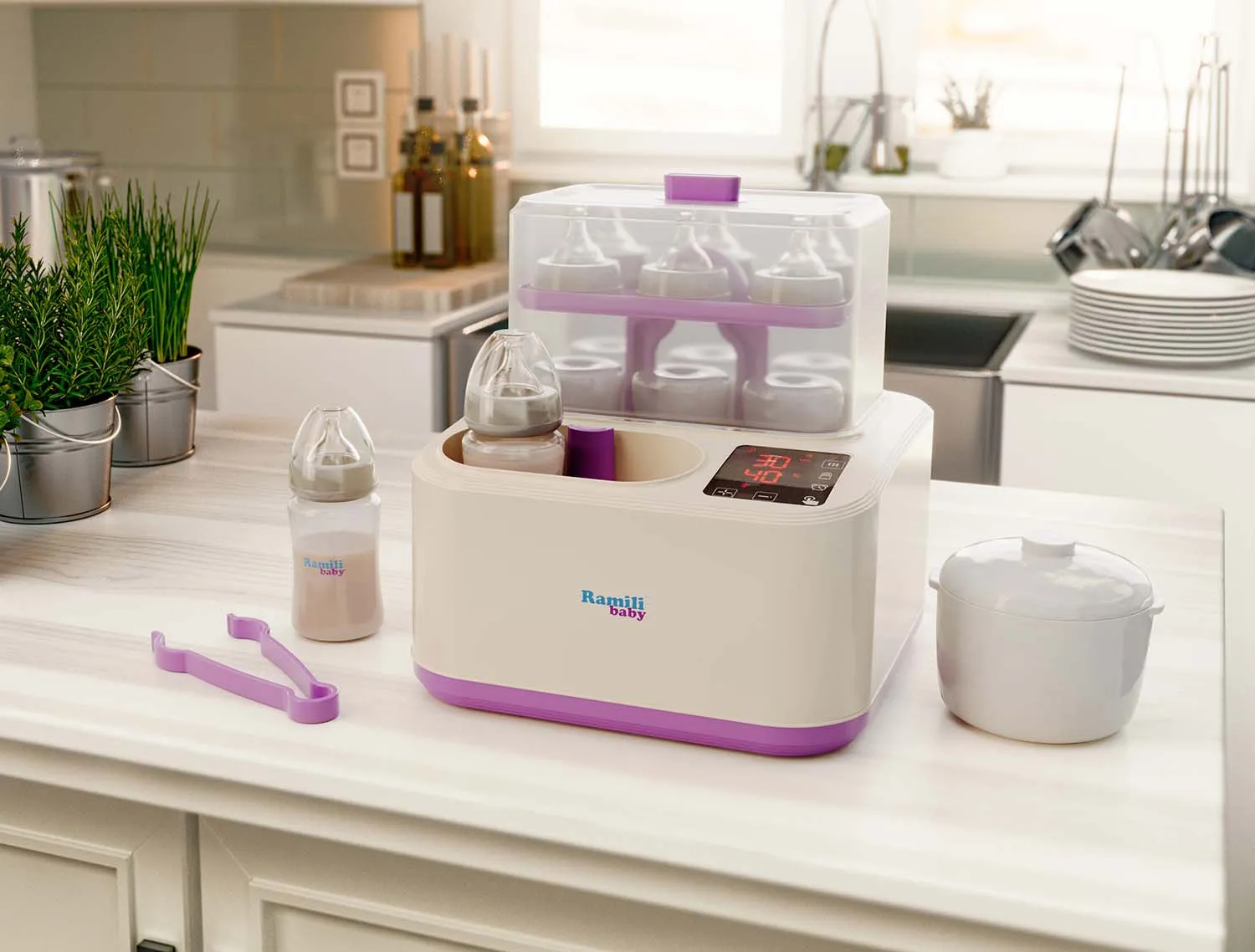Особенностью стерилизатора Ramili Baby является функция подогрева, которая позволяет поддерживать оптимальную температуру питания или воды для приготовления смеси.