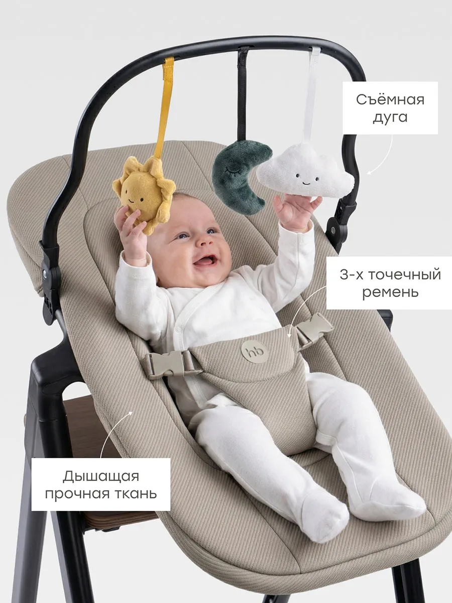 - 3 уровня высоты сиденья – позволяют выбрать комфортное положение для кормления, игр и отдыха;