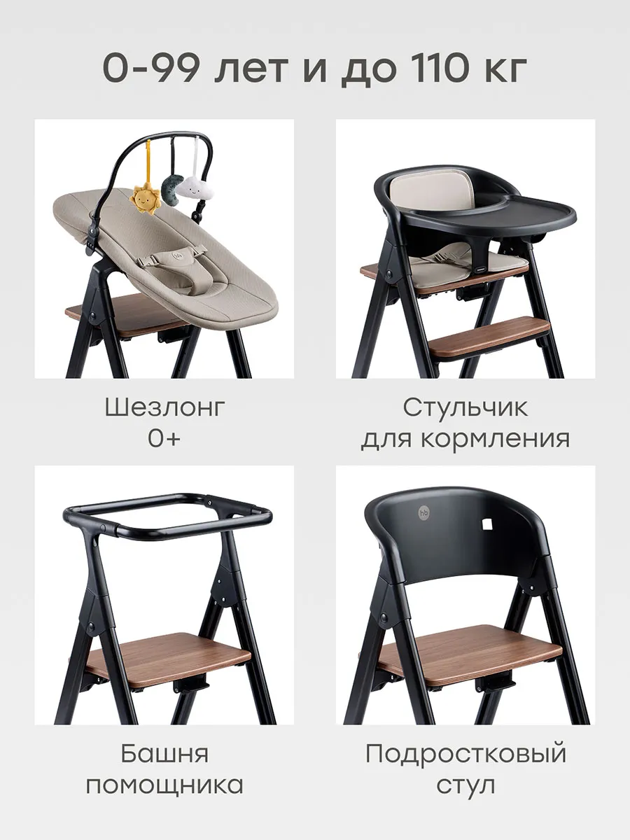 - Максимальная нагрузка: 9 кг (шезлонг) 15 кг (стул для кормления)) 100 кг (высокий стул)