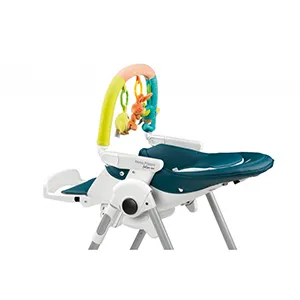 - К стульчику прилагаются дуга с игрушками и мягкая двухсторонняя подушка-вкладыш, одна сторона которой из искусственной кожи, а другая – из ткани Fresco Jersey