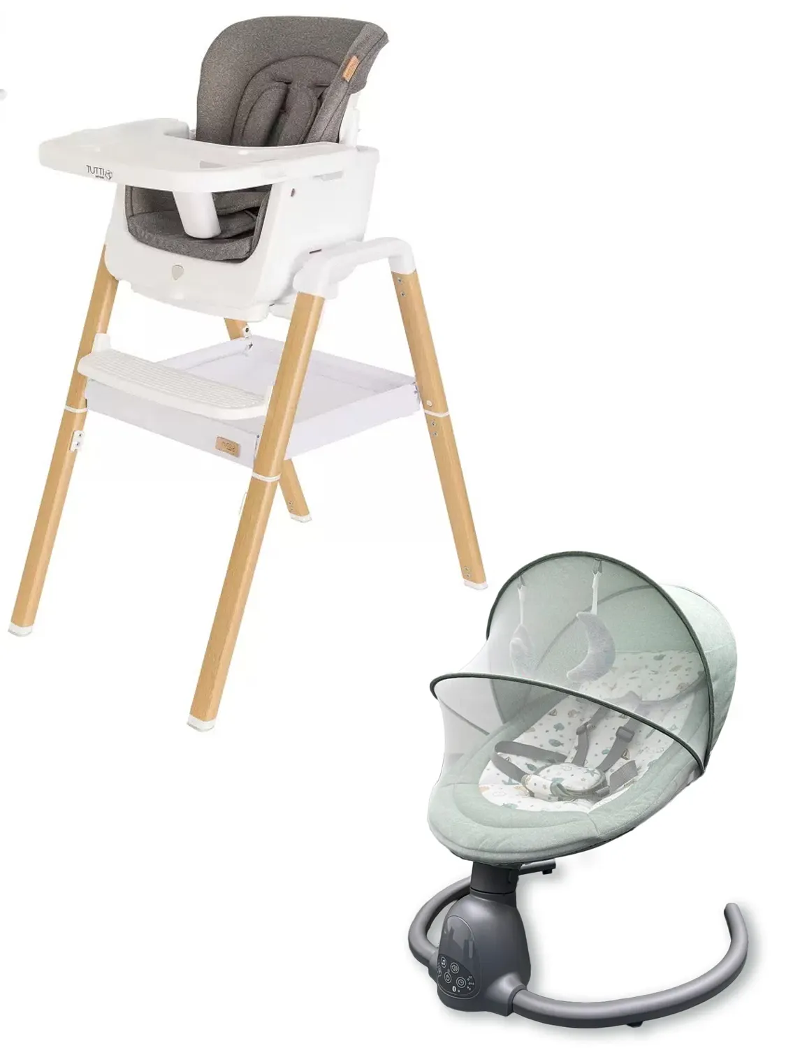 Стульчик для кормления растущий Tutti Bambini NOVA + Качели Fiorellino mint BSN001