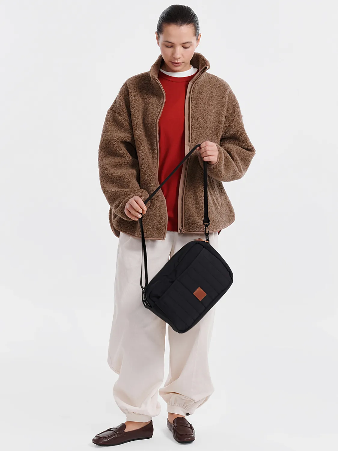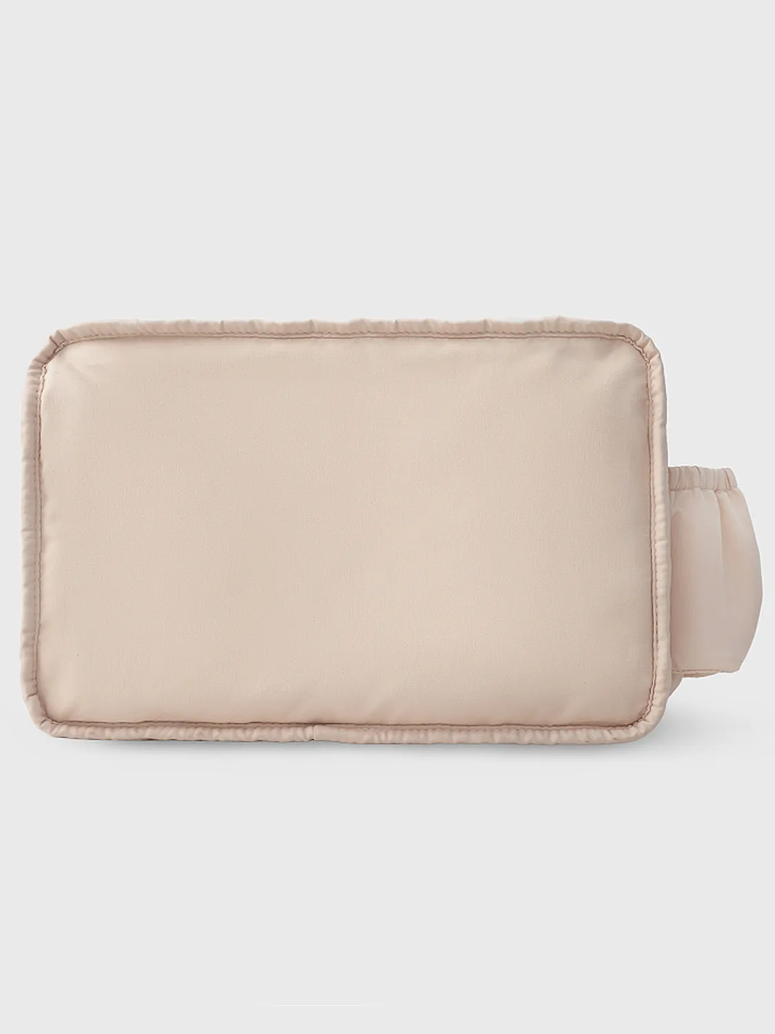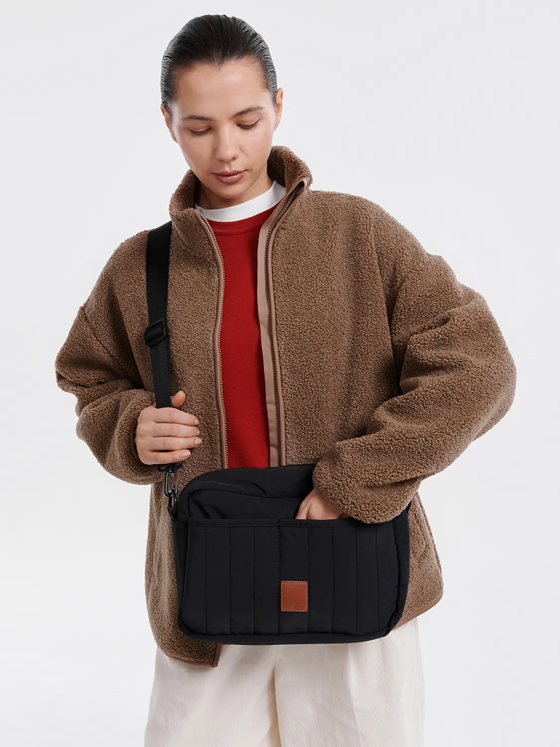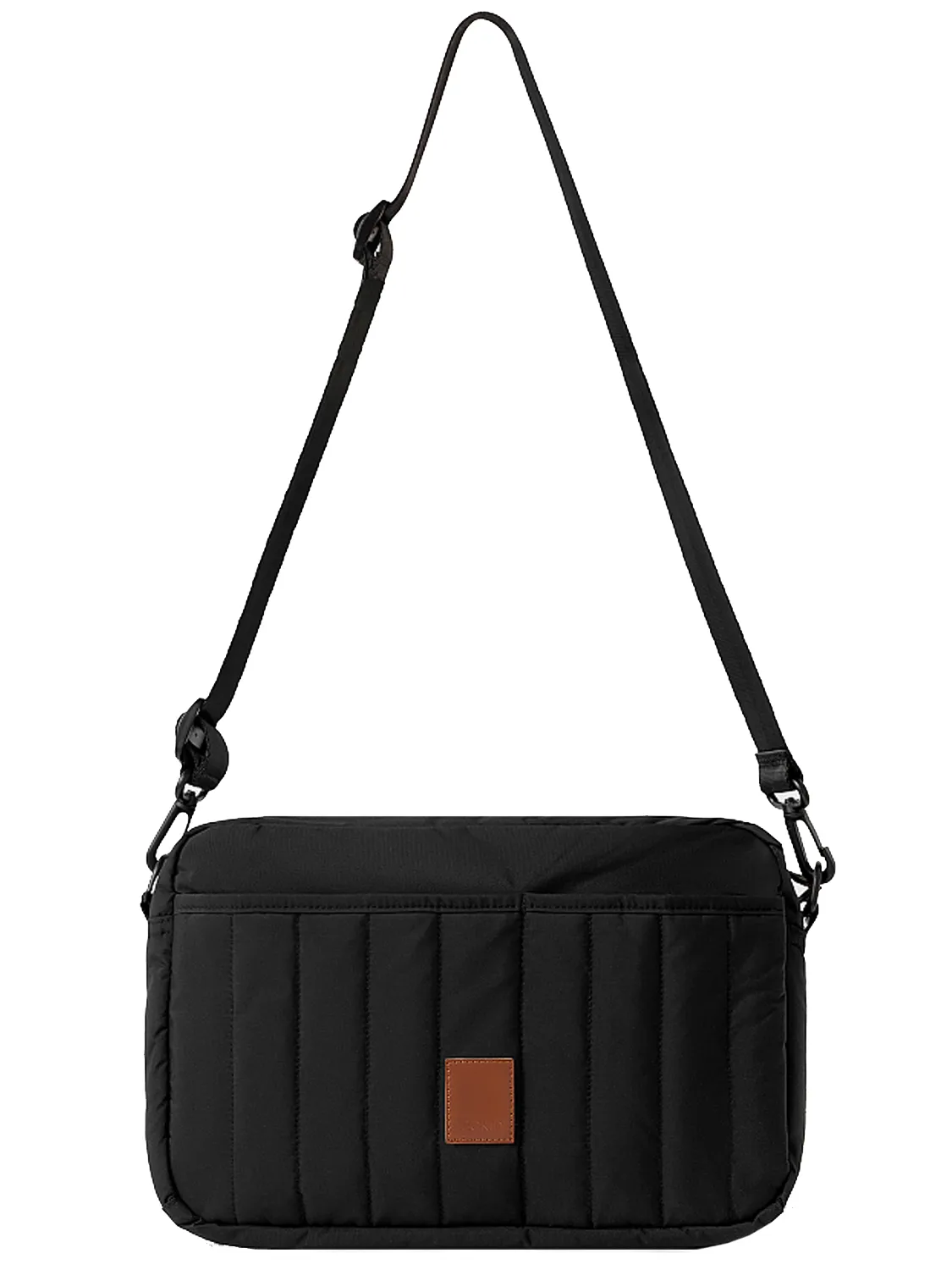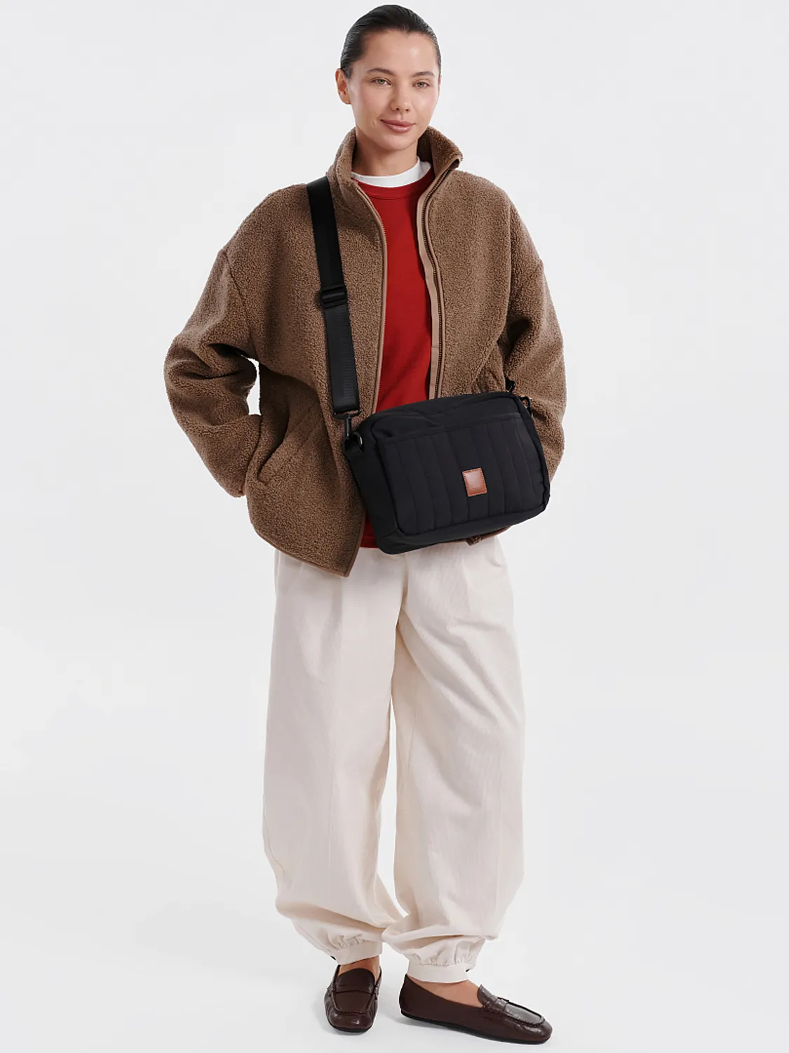 Снаружи — непромокаемая ткань, внутри — мягкая и износостойкая подкладка с пятью продуманными отделениями. Один из них — термокарман — сохраняет температуру бутылочки как в жару, так и в холод.