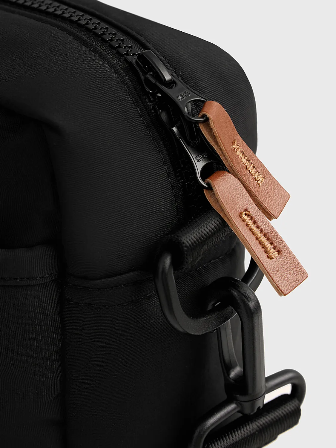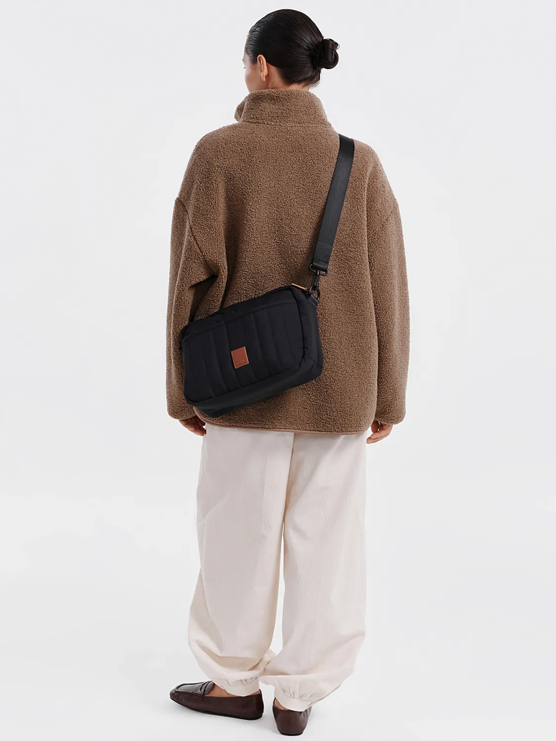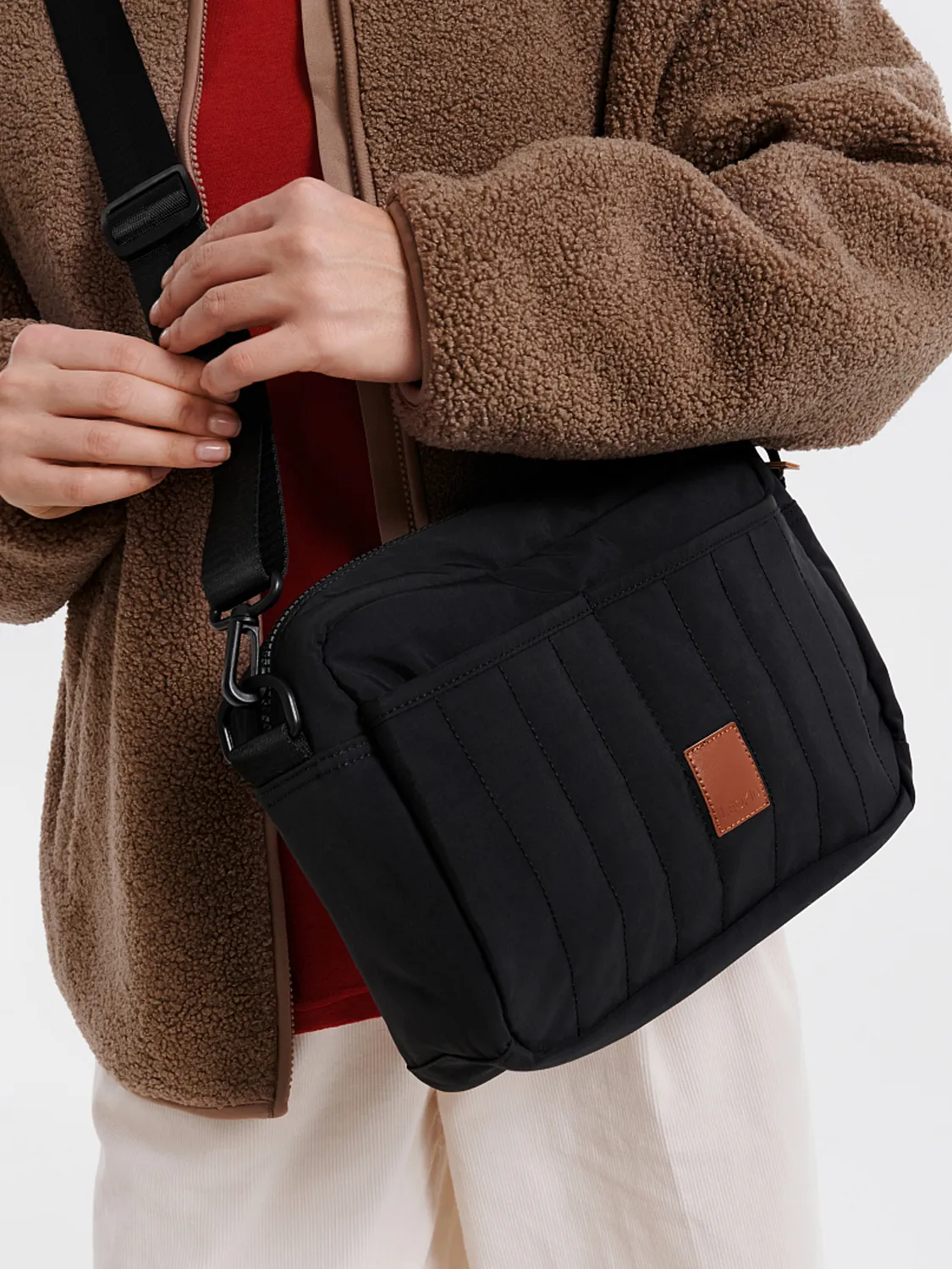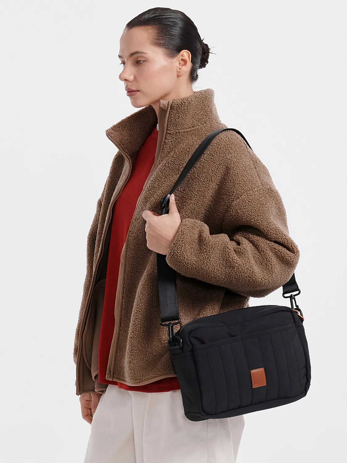 Снаружи — непромокаемая ткань, внутри — мягкая и износостойкая подкладка с пятью продуманными отделениями. Один из них — термокарман — сохраняет температуру бутылочки как в жару, так и в холод.