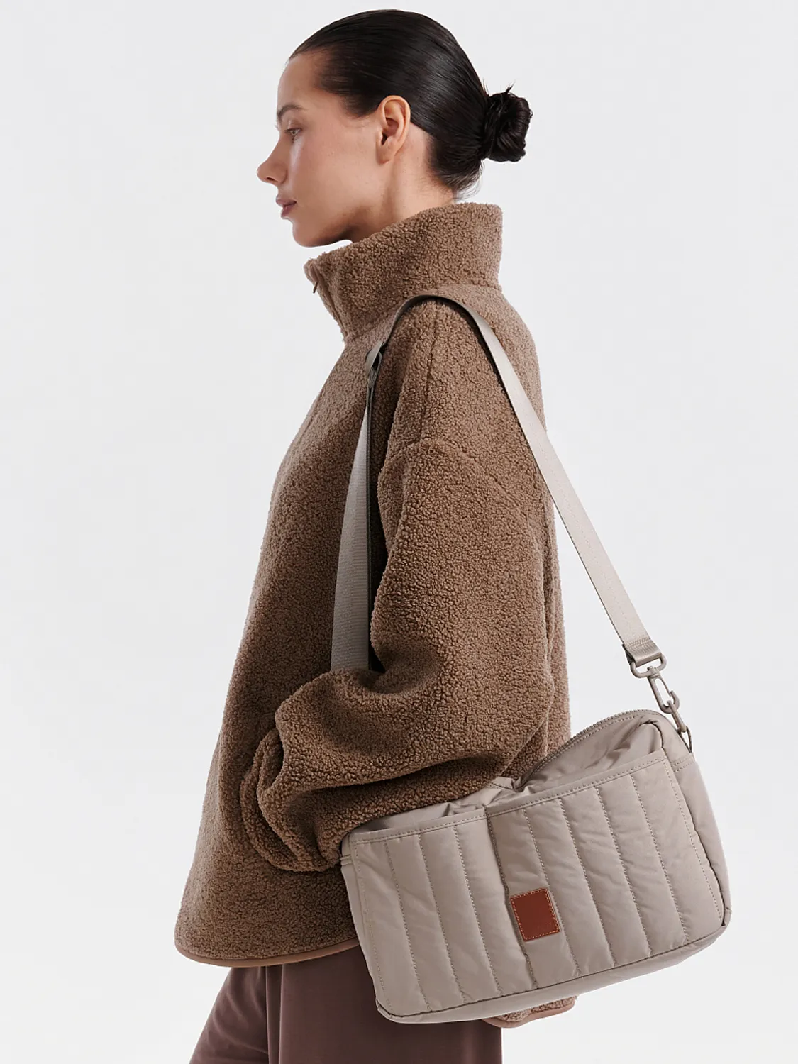 Сумка-органайзер выполнена из прочного материала и дополнена удобным и надёжным креплением: карабинами, которые подойдут к любой коляске или санкам. Сумку легко отстегнуть от коляски — и удобно носить на плече.