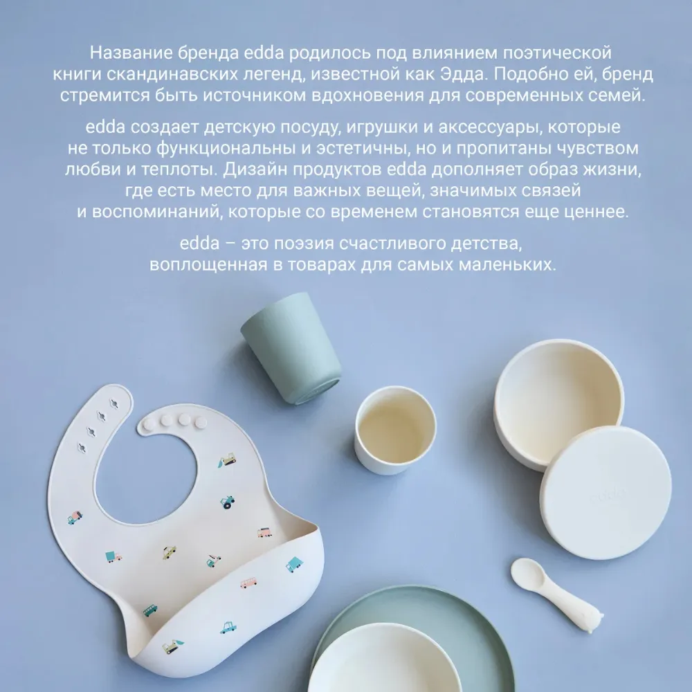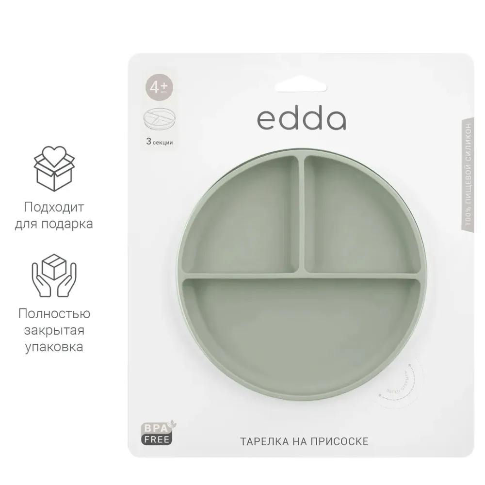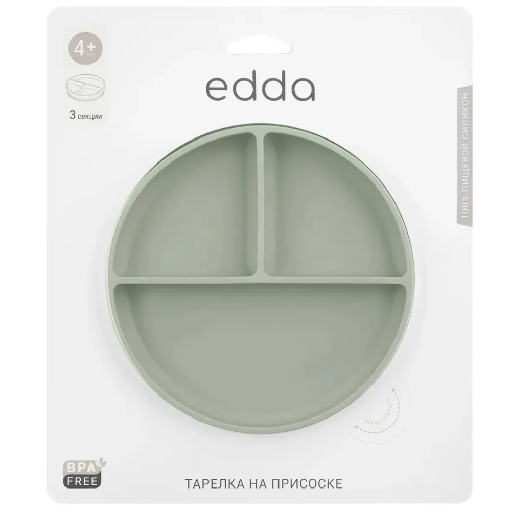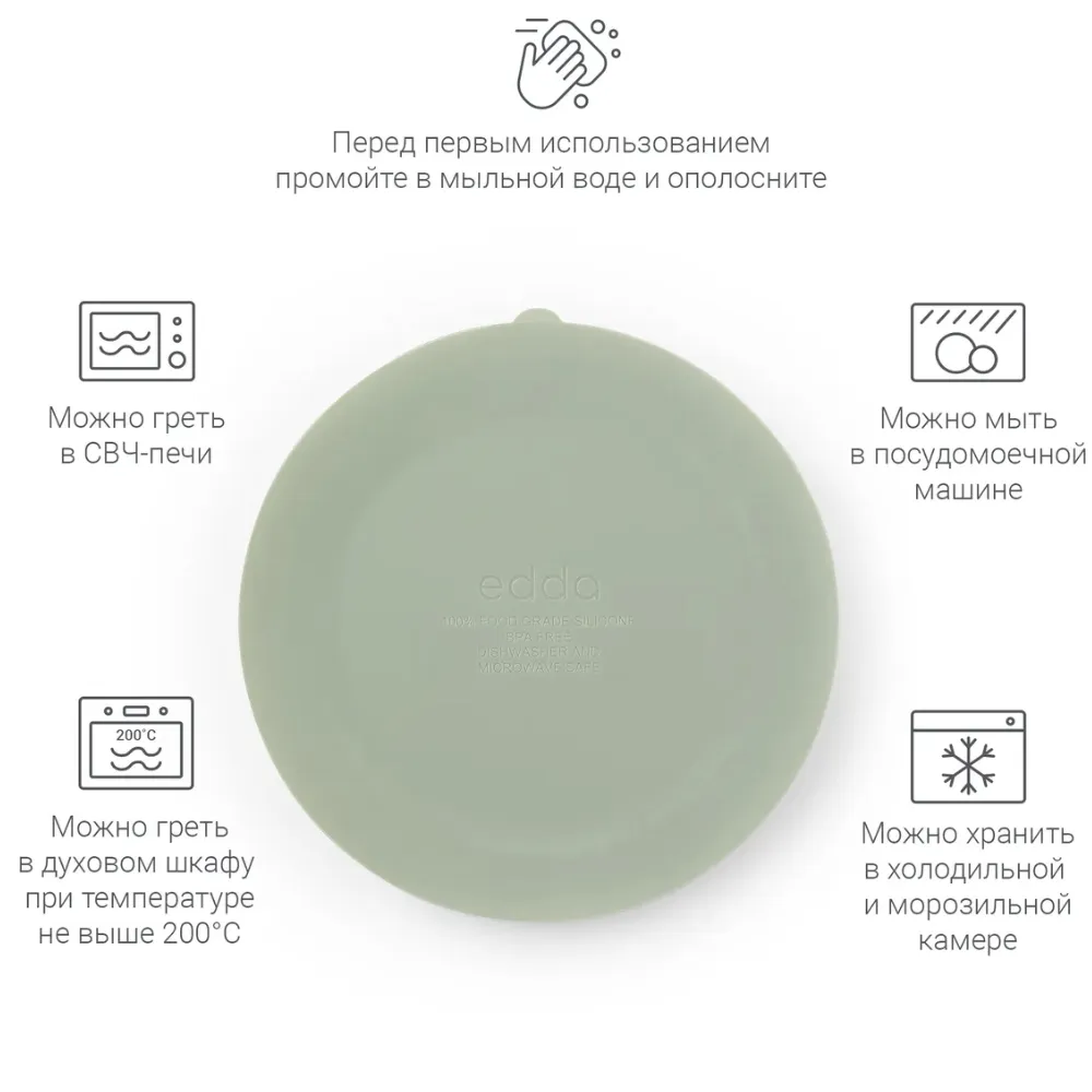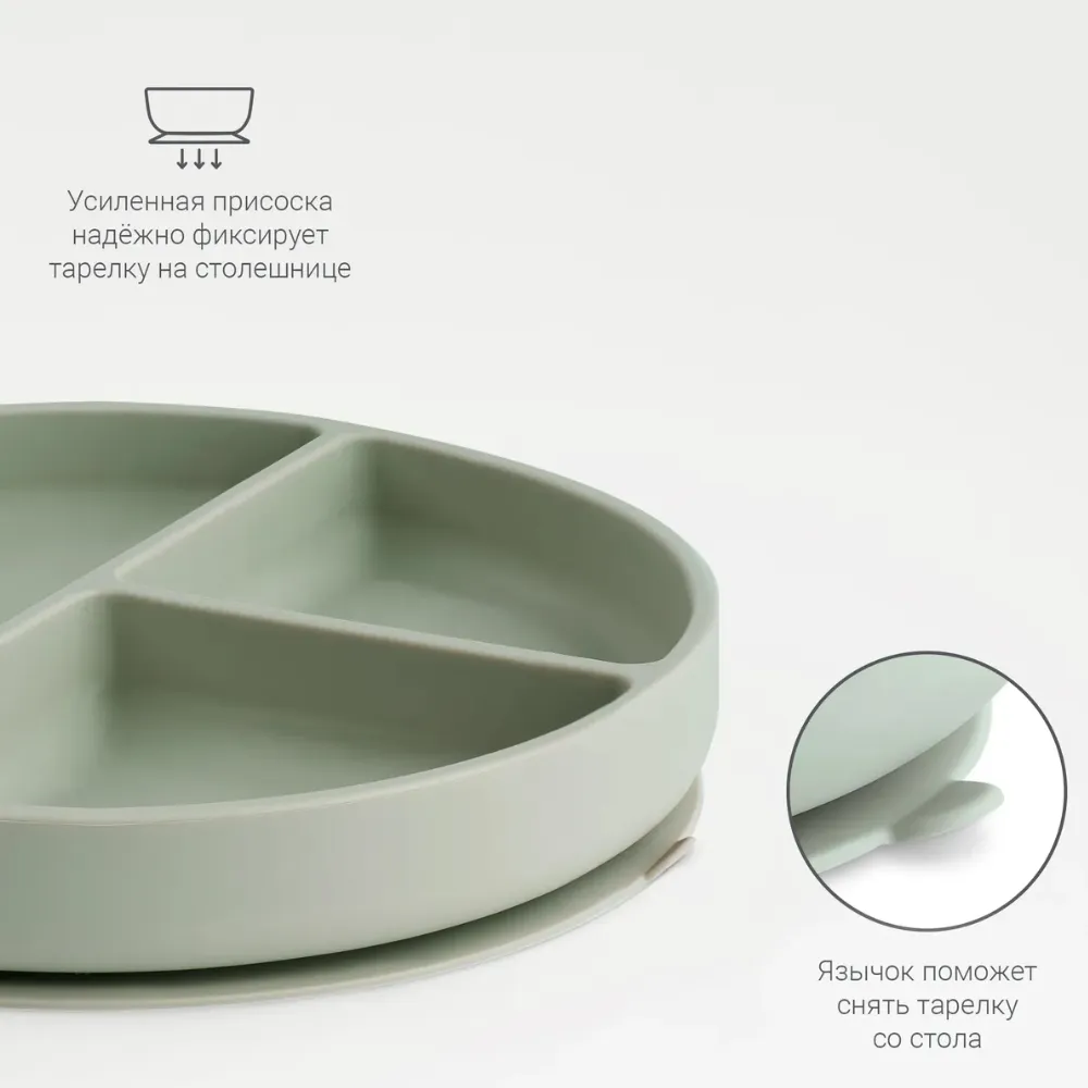 Её важный плюс — крепкая присоска, которая спроектирована под углом, усиливающим сцепление со столом в несколько раз. Удобный язычок позволяет легко открепить посуду от стола после приёма пищи. Материал тарелки — гипоаллергенный пищевой силикон.