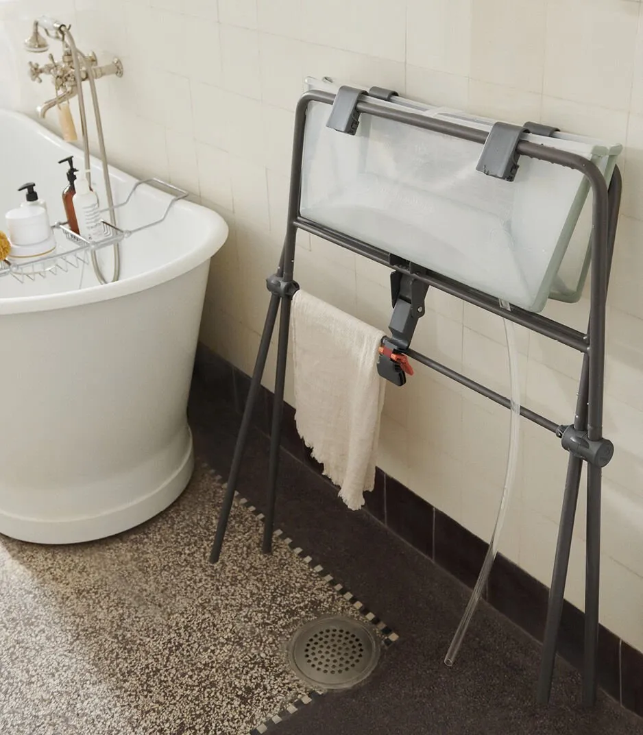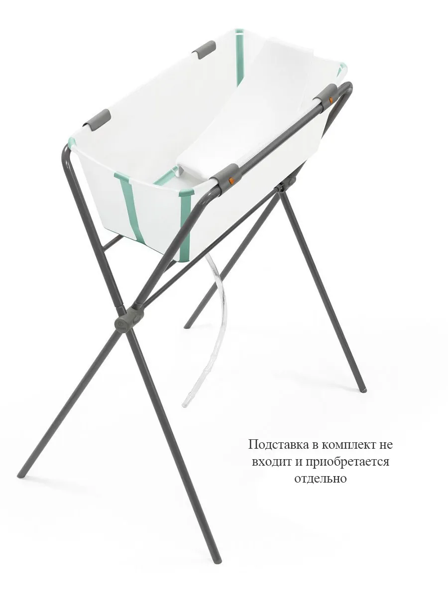 - Подставка для ванны Stokke Flexi Bath Stand также может быть добавлена в качестве аксессуара и предназначена для сближения вас и вашего малыша, для укрепления связи и игр во время купания. Она складывается вместе с ванной и занимает мало места. Подставка приобретается отдельно;