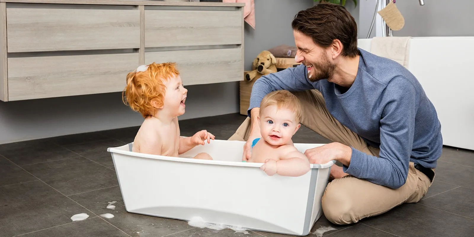 Ванночка Stokke FlexiBath Макси: Ваши подрастающие дети весело проводят время вместе в ванной!