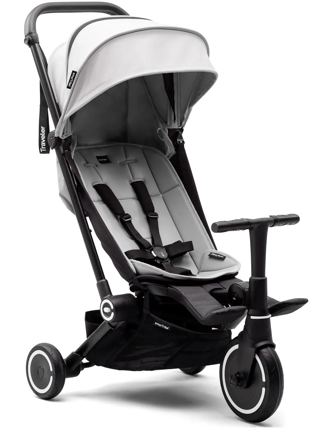 Первый в мире велосипед-коляска для детей Traveler, легко трансформируется из удобной коляски для младенцев (идеально подходит для сна на ходу) в захватывающий трехколесный велосипед для малышей — всего лишь нажатием кнопки. А когда приходит время возвращаться домой, механизм быстрого складывания делает хранение Traveler простым и удобным, идеально подходящим для семей, которые всегда в движении.