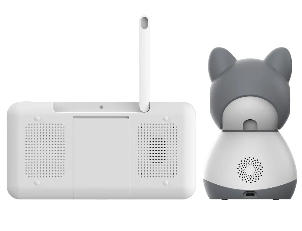 Детский блок (камера) отличается привлекательным дизайном на радость малышу и родителям. Если поблизости нет горизонтальной поверхности, на котором можно поставить камеру, ее можно закрепить практически на любом предмете, например, на элементах мебели или ручке коляски с помощью гибкого штатива (приобретается дополнительно). В родительском блоке (мониторе) встроен емкий аккумулятор. Камера работает от сети, но ее можно подключить к вашему портативному аккумулятору (пауэр банк).