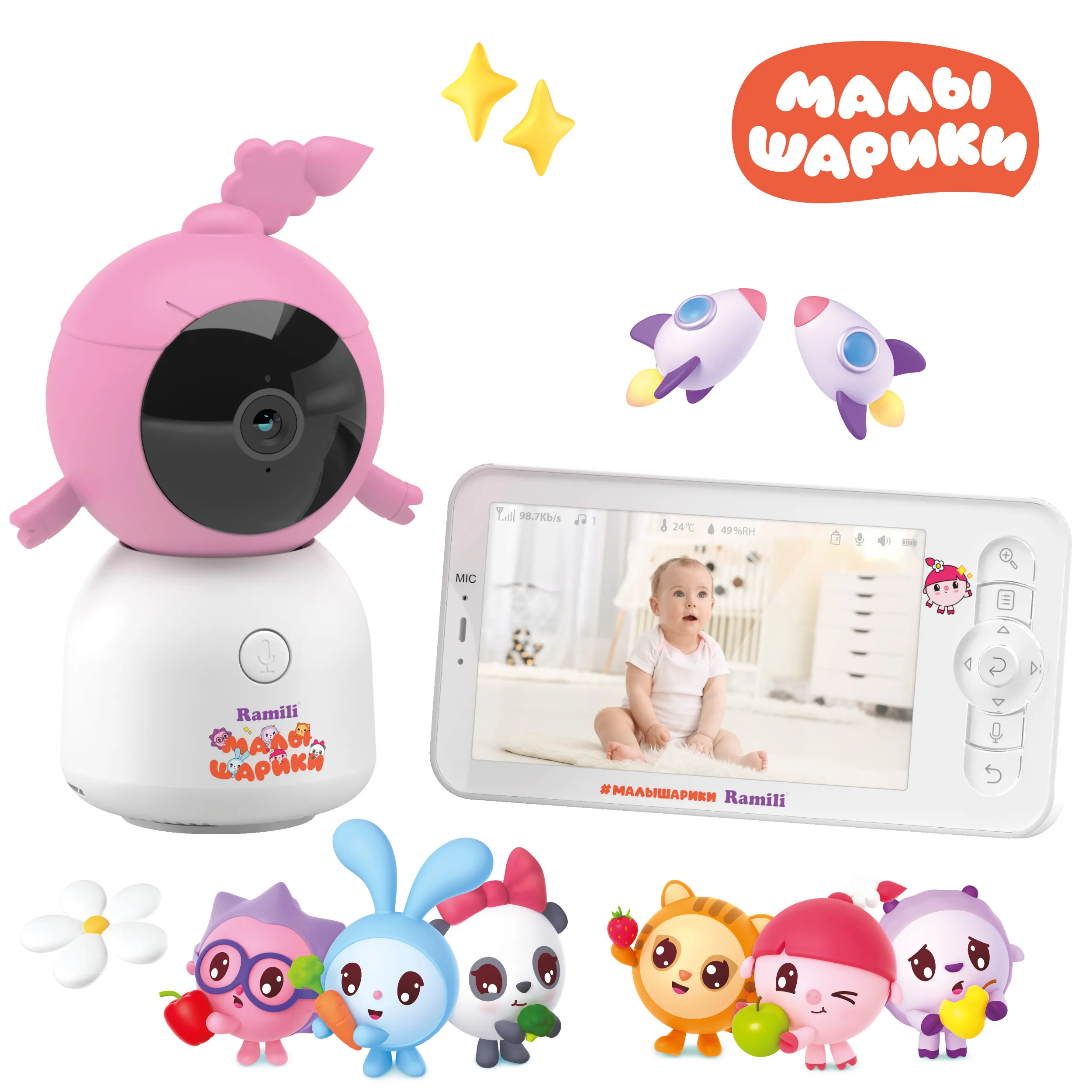 Дизайн этой видеоняни Ramili Baby RV100NUSHA выполнен по мотивам серии популярных мультфильмов для самых маленьких зрителей – Малышарики. Уникальный и забавный дизайн камеры порадует малыша и отлично впишется в интерьер любой детской комнаты.
