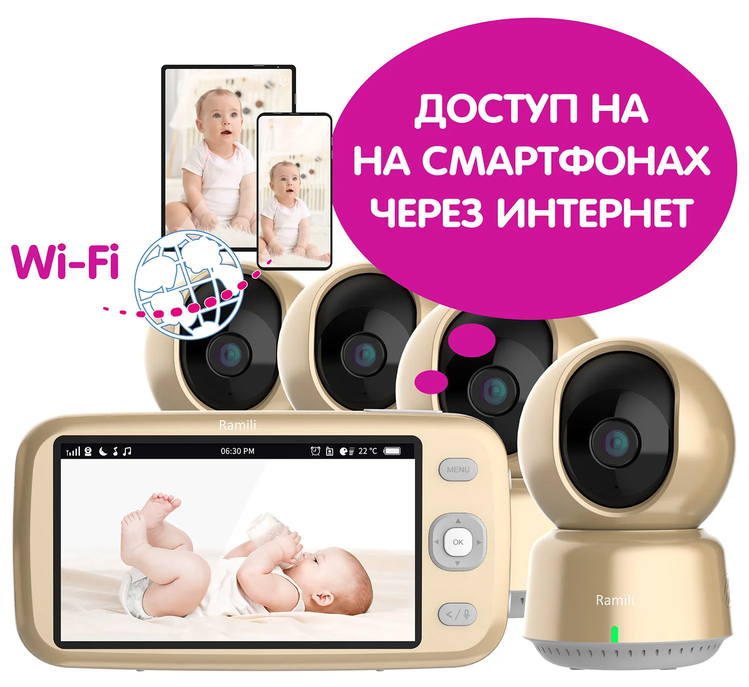 Видеоняня Ramili Baby с монитором дыхания 3 в 1 Wi-Fi Full HD радио с повышенной дальностью RV1800SP