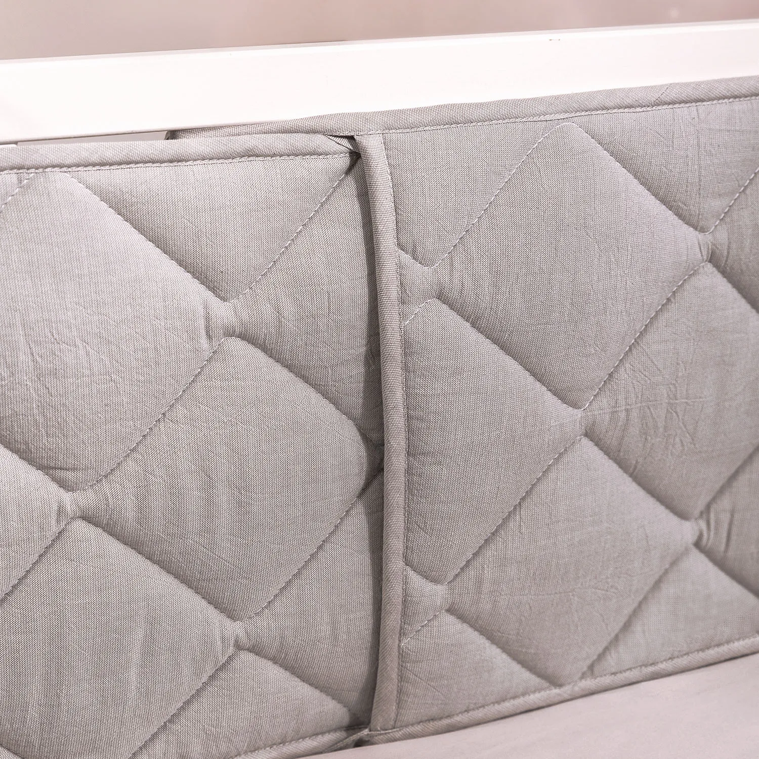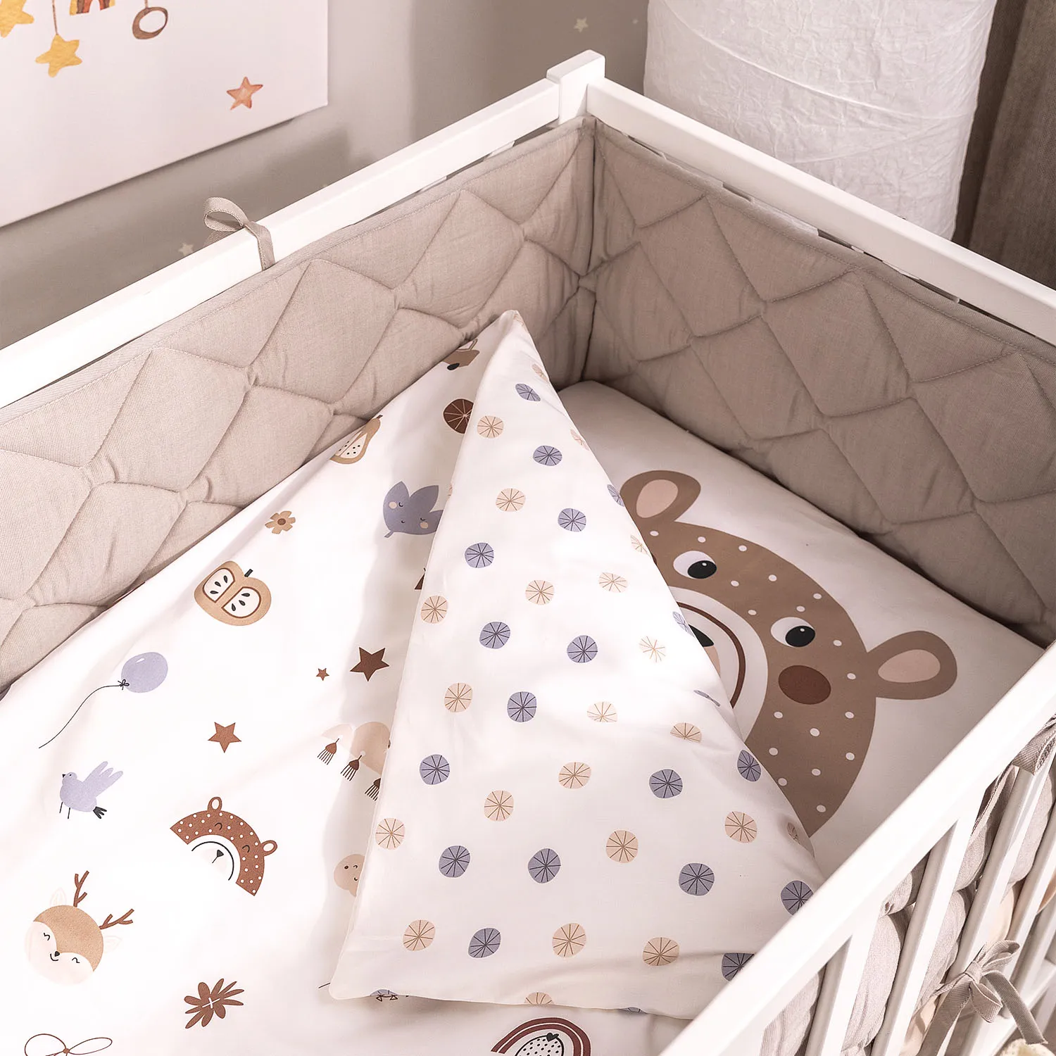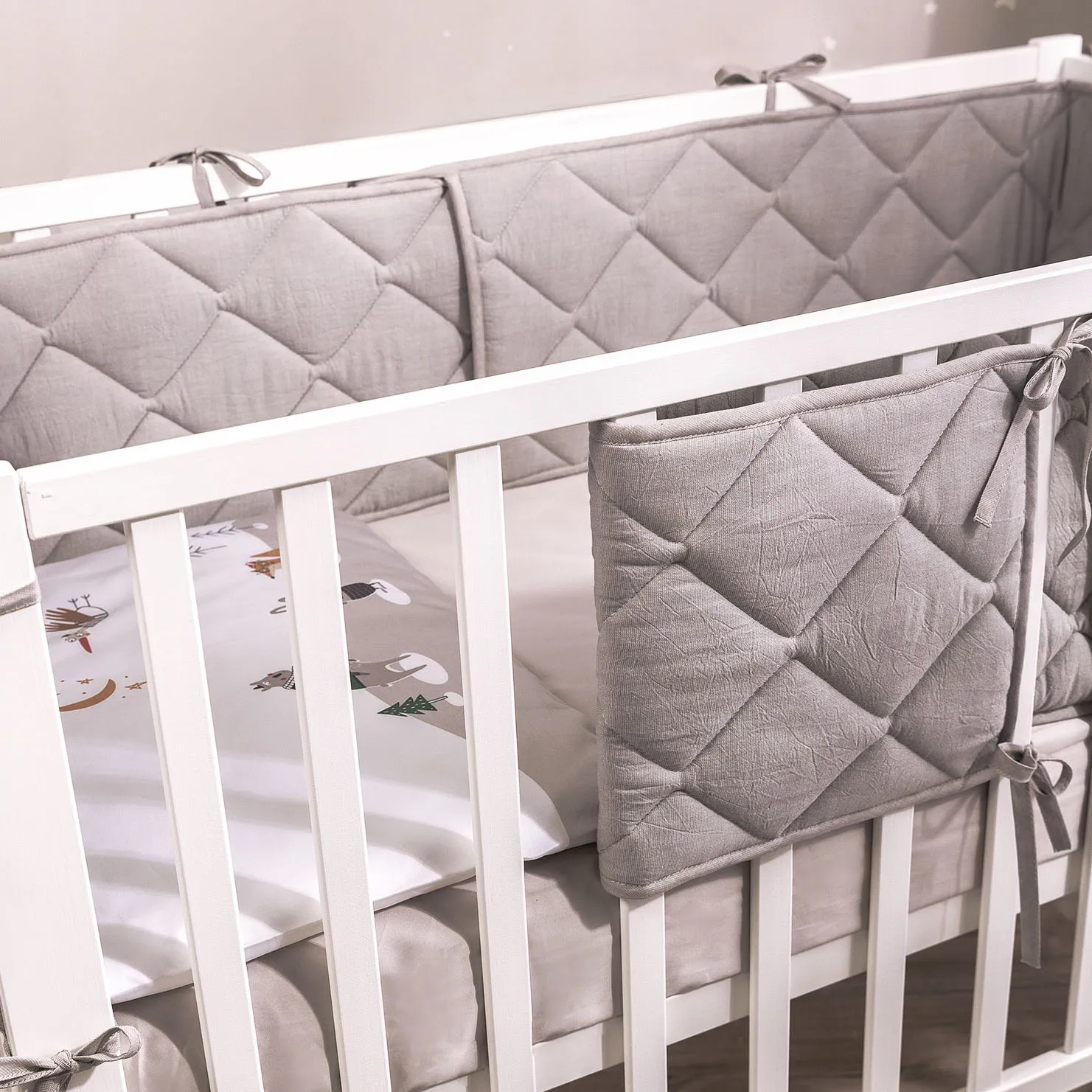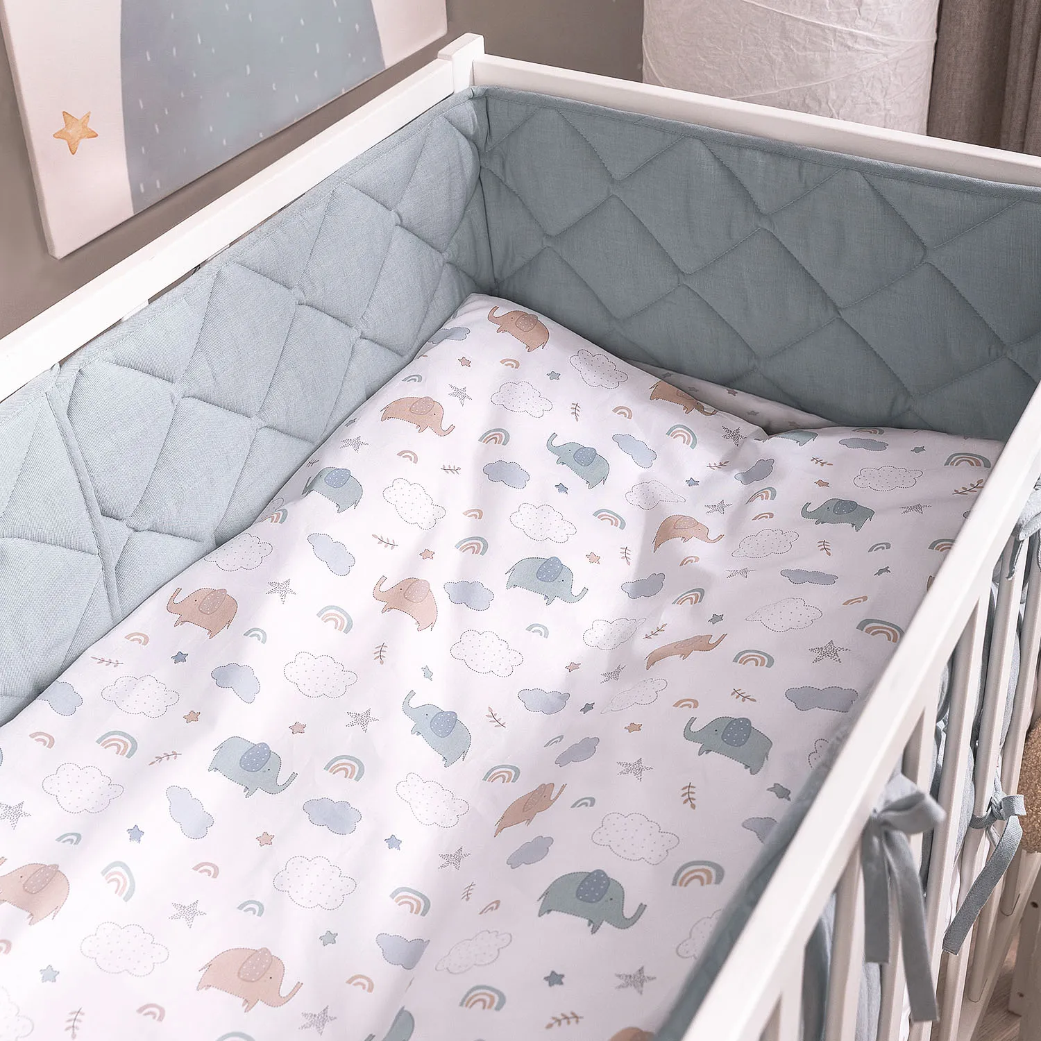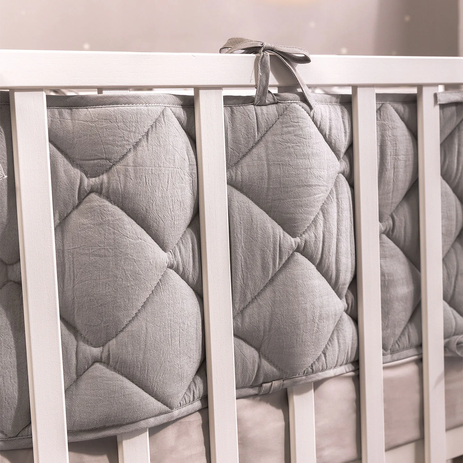 Стеганая структура делает бортики плотными и упругими, но при этом гибкими, чтобы легко принять нужную форму по периметру кроватки. Они хорошо защищают малыша от сквозняков, застреваний, случайных ударов и создают уютную атмосферу для спокойного сна.