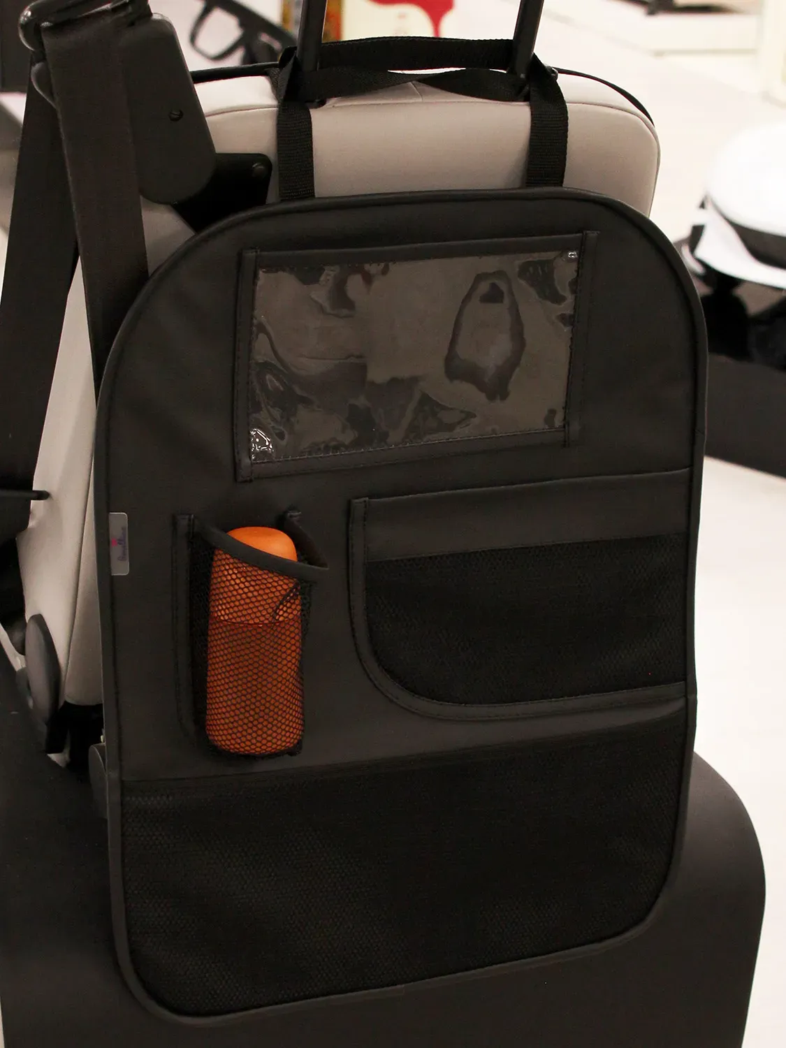 - Функциональный органайзер: сетчатый карман для бутылочки, 2 сетчатых кармана для вещей и карман для планшета с силиконовой накладкой