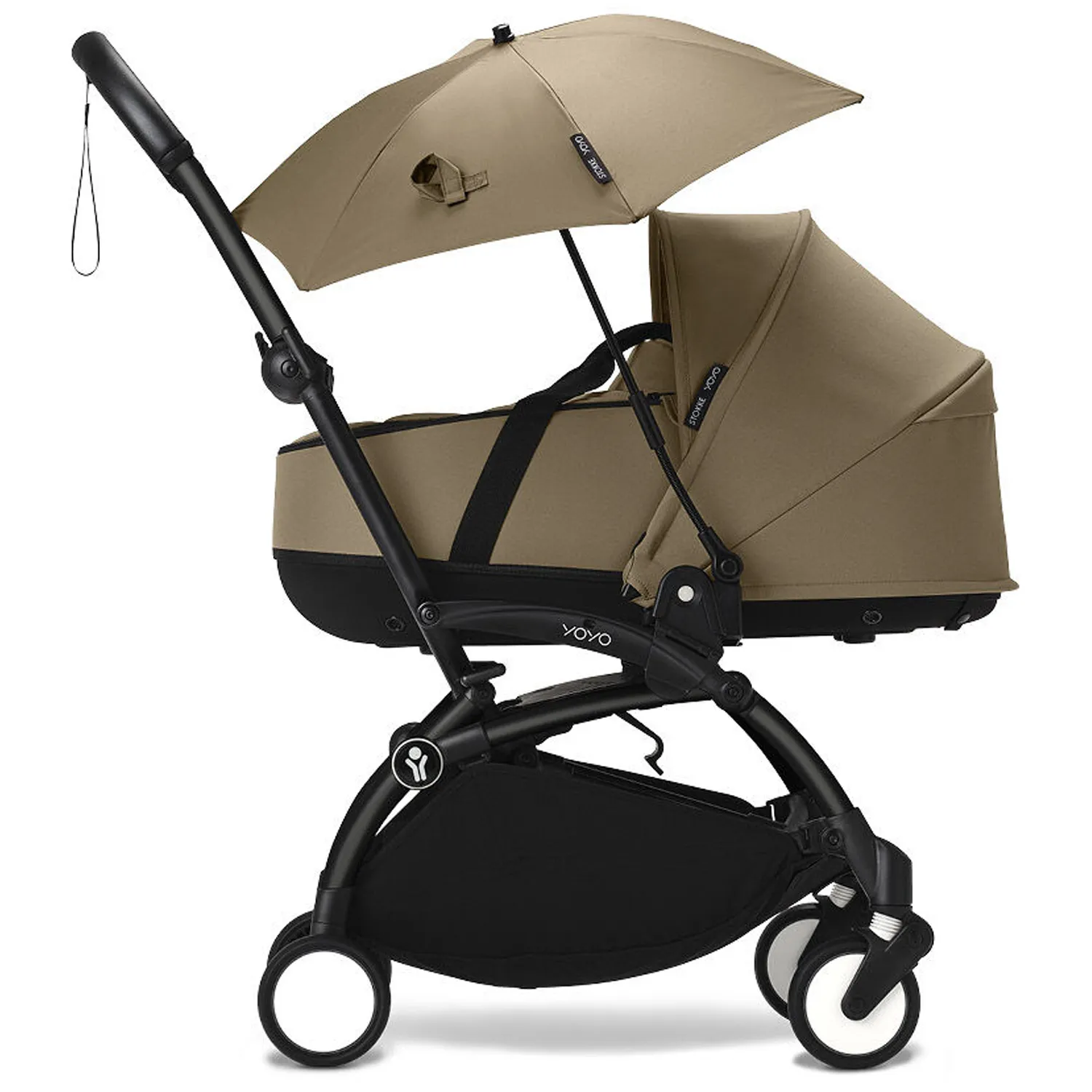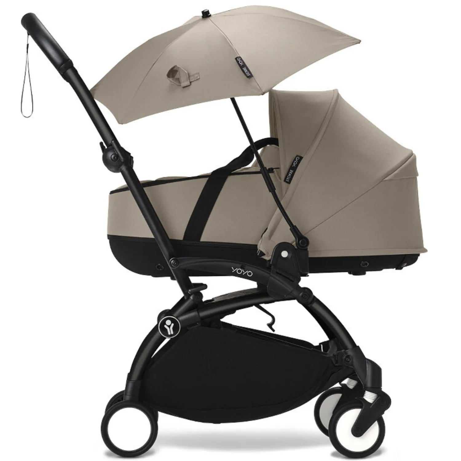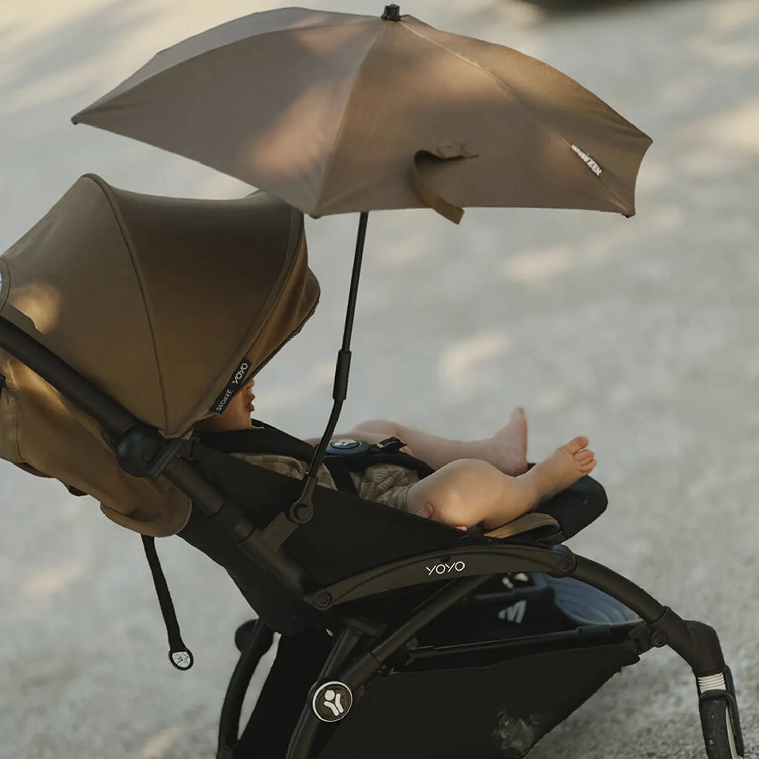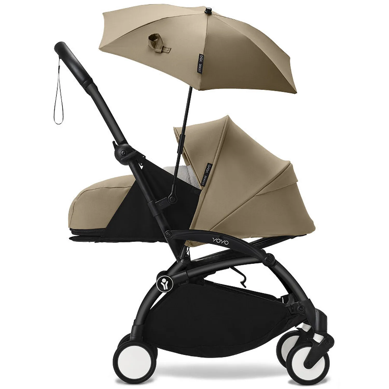 Зонтик от солнца адаптируется ко всем версиям Stokke YOYO³ и Babyzen YOYO (комплект для новорожденного, люлька для новорожденного и комплект 6+) и может крепиться к автокреслу.
